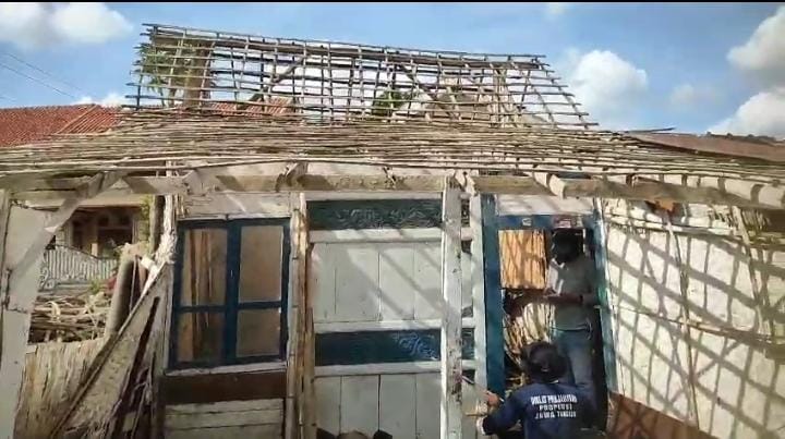 Anggota Koramil Pademawu Kodim 0826 Pamekasan dan CV Ayunda Permata Sejahtera Tunjukkan Semangat Gotong Royong Percepat Bangun Rumah Lansia 73 Tahun