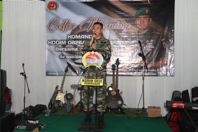 PAMEKASAN — Aroma kopi pagi di halaman Makodim 0826 Pamekasan, Jumat (24/10/2025), terasa berbeda. Dibalik cangkir hangat dan obrolan ringan, terselip pesan kuat tentang peran strategis pers dalam membangun negeri.