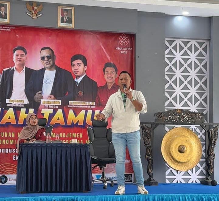 Pamekasan — Peran penting pelaku usaha lokal dalam mendorong kemajuan ekonomi daerah menjadi sorotan dalam seminar Kuliah Tamu Universitas Madura (UNIRA) pada Senin (24/11/2025). Kegiatan tersebut menghadirkan CEO Bani Grup, Ali Zainal Abidin, sebagai pemateri utama yang memberikan pembekalan kewirausahaan kepada mahasiswa, khususnya generasi Z.